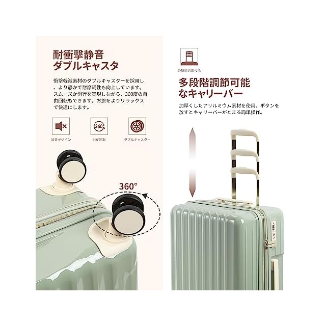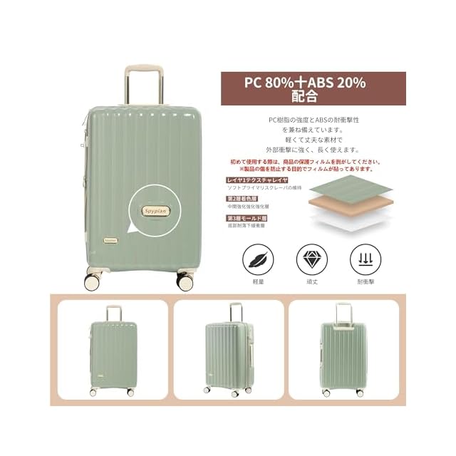 [Spyplan] スーツケース 機内持ち込み 拡張機能付き キャリーケース 超軽量 大容量 キャリーバッグ 大型 耐衝撃 ジッパータイプ 静音 ダブルキャスター 360度回転 TSAロック搭載 旅行 ビジネス 出張 Sサイズ 2泊3日 40リットル,グリーン