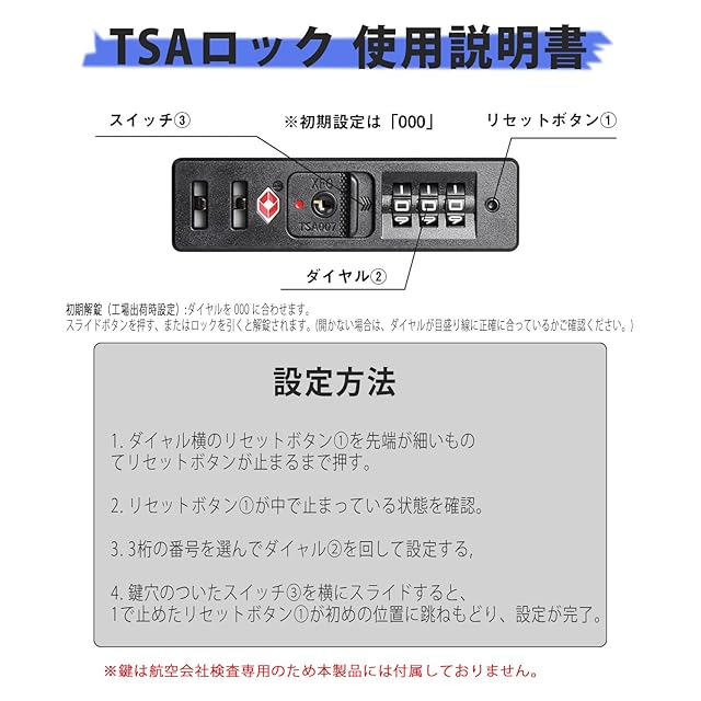 【三段調節キャリバー・TSAロック】超軽量のアルミニウム製キャリバー、高さ三段階調節、ご自分の身長に合わせてスムーズに調整が可能です。耐振性に優れるデザインで荷物を引きかける時、しっかりしています。また、滑りにくいソフトハンドルで長い時間の手提げでも手は疲れません。海外旅行には欠かせないTSAダイヤル方式のロックが搭載されており、外出がより安全になります。※鍵は航空会社検査専用のため本製品には付属しておりません。
