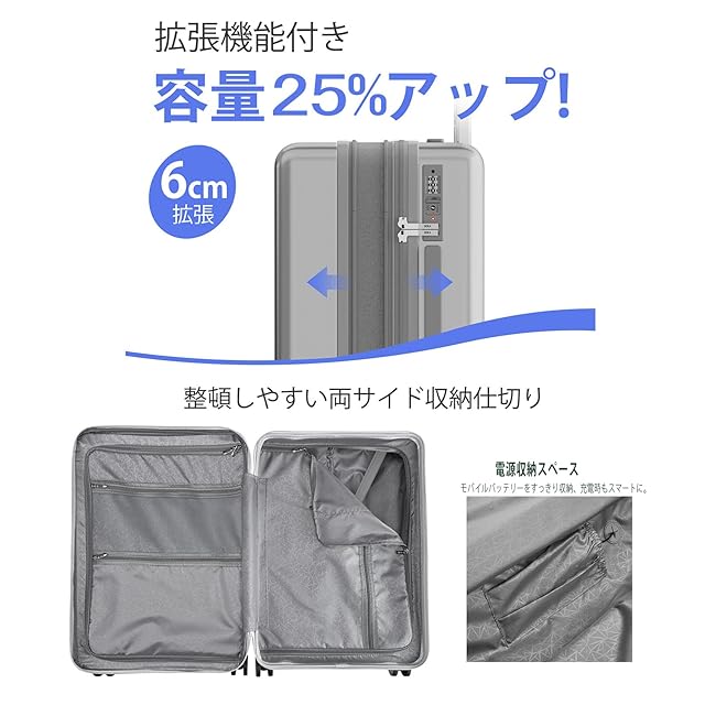 【拡張可能・大容量タイプ】マチ幅を6cm拡張するだけで容量が25%UPできる。旅先でお土産が増えても安心です。※拡張時は機内持ち込み不可。