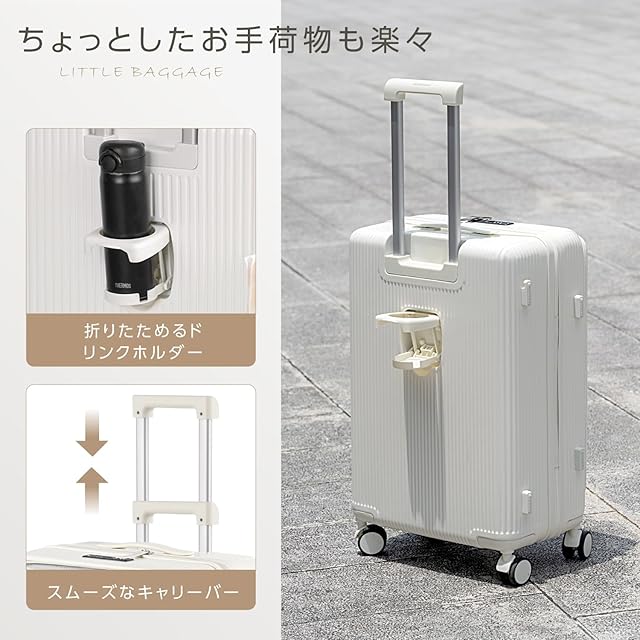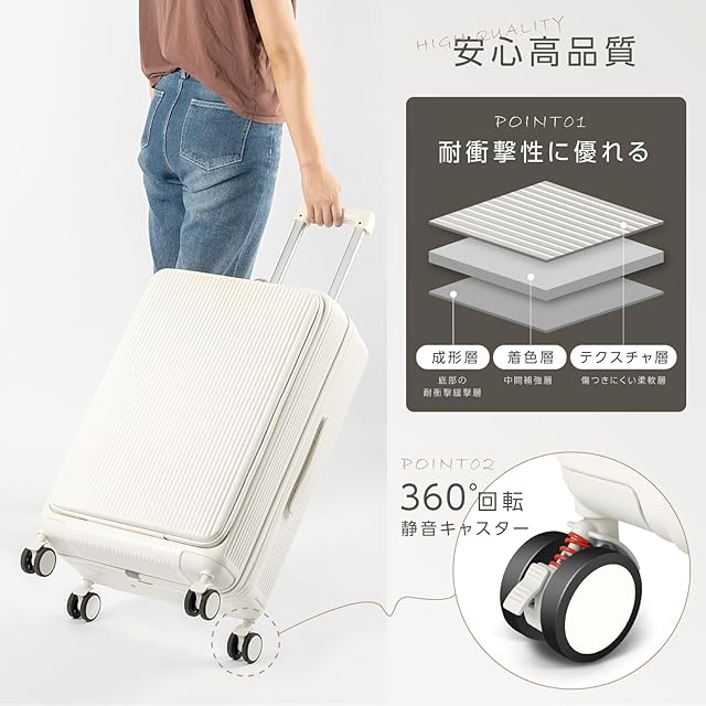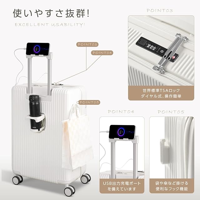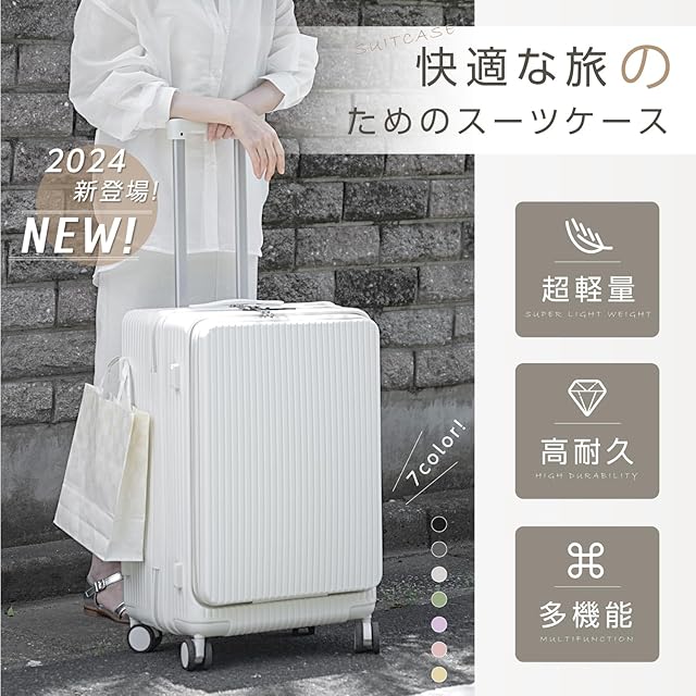 [JOLISTAR] スーツケース キャリーケース キャリーバッグ 前開き フロントオープン 光沢感 機内持込 ABS+PC 耐衝撃 大容量 大型 超軽量 静音 USBポート カップホルダー 荷物フック ダブルキャスター ストッパー付き 360度回転 ブレーキ機能 スマホスタンド TSAローク ファスナータイプ 人気 おしゃれ 旅行 ビジネス 出張 修学 泊まる 入院
