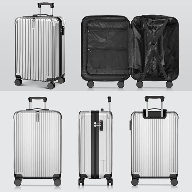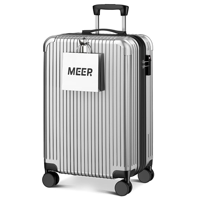 [meer] スーツケース 超軽量 キャリーケース キャリーバッグ 隠しフック機能 360度回転 耐衝撃 静音 TSAローク搭載 泊まる ファスナー式 ビジネス 修学旅行 海外旅行 国内旅行 小型 出張 (シルバー, Sサイズ (超軽量))