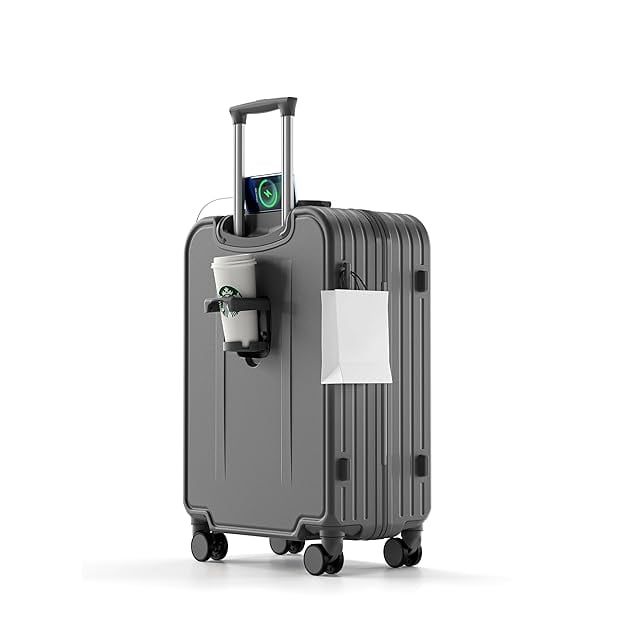【スーツケース 機内持ち込み・USB充電ポートと折りたたみ式カップホルダー付き】スーツケースにはUSB充電ポートが付いており、いつでもどこでも充電できます。さらに、便利なカップホルダーが付いており、水筒、コーヒーカップ、その他の飲料容器を置くのに便利です。多機能のデザインと使いやすさが魅力です。