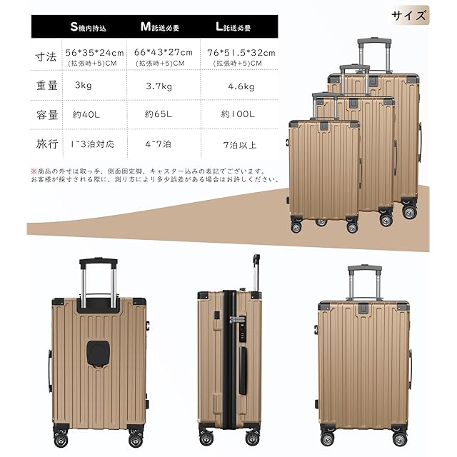 color:シャンパンゴールド size:Sサイズ /機内持込(1-3泊):