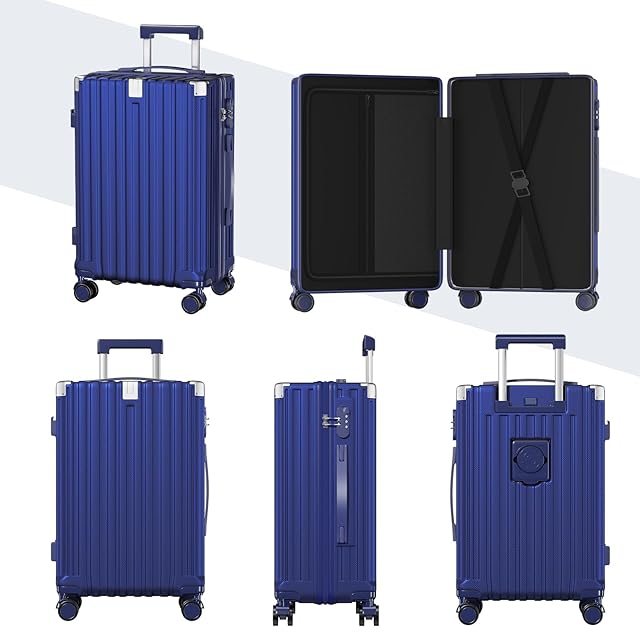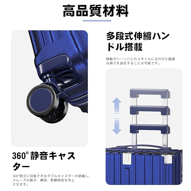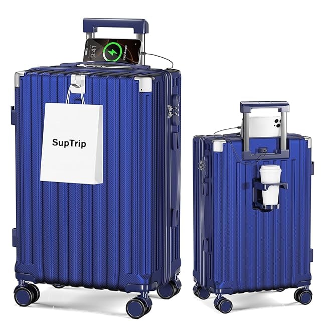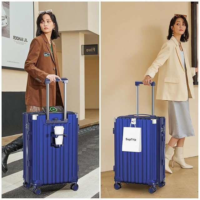[SupTrip] スーツケース 機内持ち込み 多機能 キャリーケース 大型 超軽量 キャリーバッグ 耐衝撃 USBポート付き カップホルダー付き 充電機能 荷物フック 隠しフック機能 静音 ダブルキャスター 360度回転 修学 泊まる 旅行 出張 (ブルー, XL (78L/7-10泊))