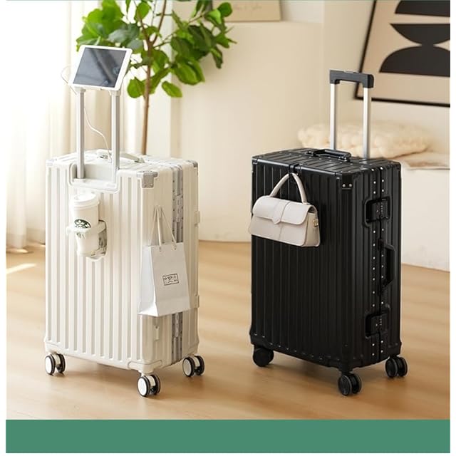 [Yuweijie] スーツケース アルミフレームタイプ キャリーケース 機内持込可 s/m/l/xlサイズ 3泊4日 多機能 バッグかけフック付き キャリーバッグ カップホルダー付き スマホホルダー付き 軽量大型 大容量 耐衝撃 人気 おしゃれ 静音 360度回転 ダブルキャスター 修学旅行 国内旅行 ビジネス 出張 ブラック 55l