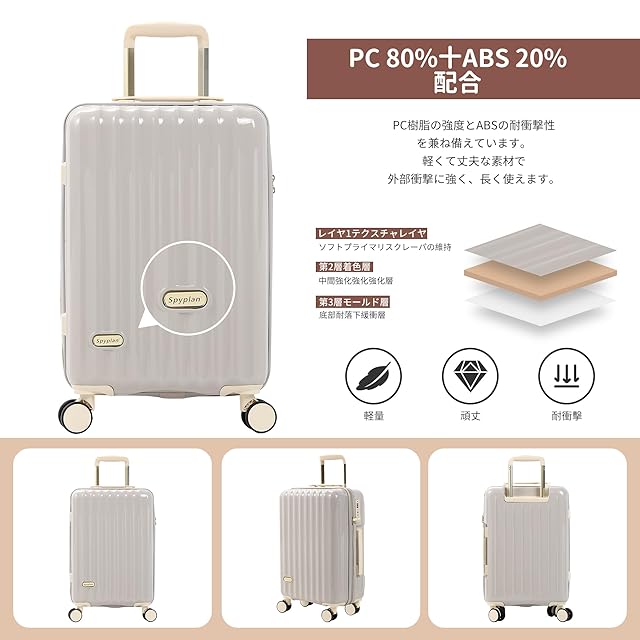 [Spyplan] スーツケース 機内持ち込み 拡張機能付き 超軽量 大容量 キャリーケース 可愛い キャリーバッグ 大型 耐衝撃 ジッパータイプ 静音 ダブルキャスター 360度回転 TSAロック搭載 人気 旅行 ビジネス 出張 mサイズ 4-6泊 ライトグレー 65l-78l