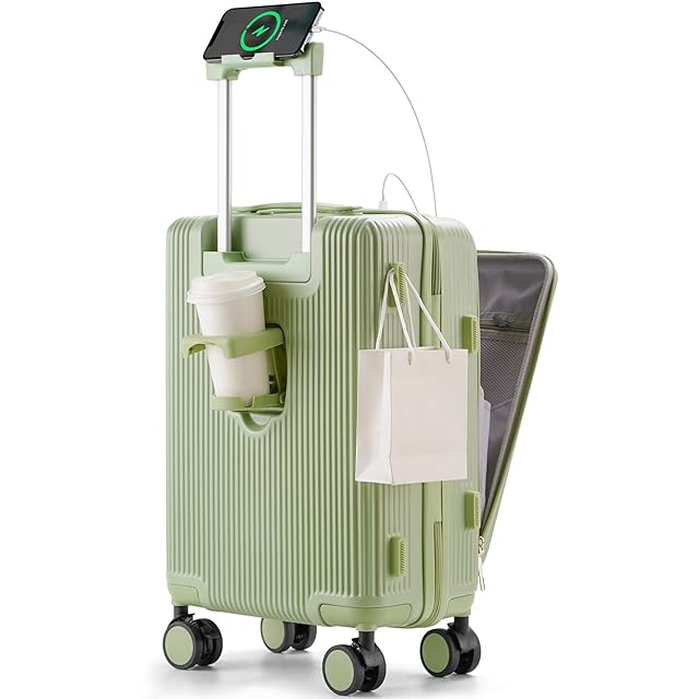[RIMUKE] 前開きキャリーケース スーツケース機内持ち込み 耐衝撃 超軽量 USBポート付き Mサイズ 大容量 4-7泊 旅行 ビジネス 出張 グリーン