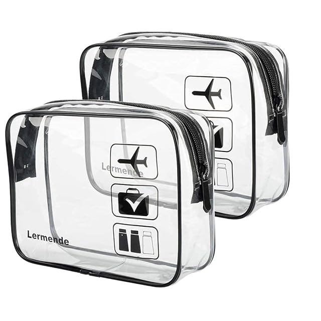 Lermende 2個 トイレタリーバッグ TSA承認済み 洗面用具 ポーチ 透明化粧ポーチ 旅行用ポーチ防水 旅行用化粧品メイクアップバッグ 男女兼用 - ブラック