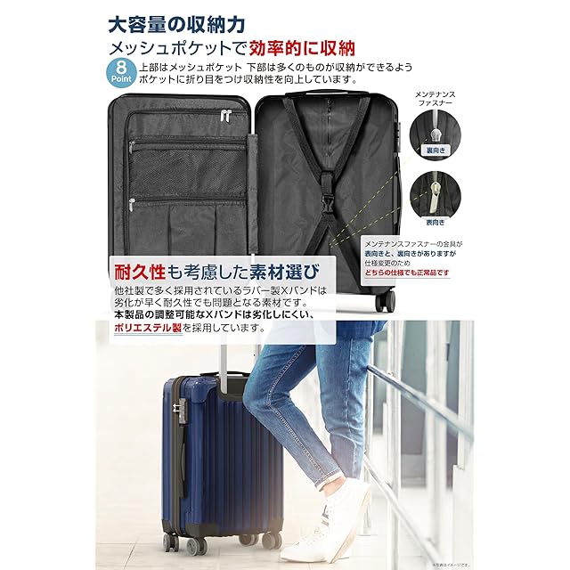 [VELSKYF] 現役客室乗務員監修 スーツケース キャリーケース キャリーバッグ キャスター交換可能[日本企業企画]一部パーツ無期限メーカー TSAダイヤルロック ダブルキャスター (Mサイズ 4-7泊 3.5kg 64.5L ネイビー 濃紺)