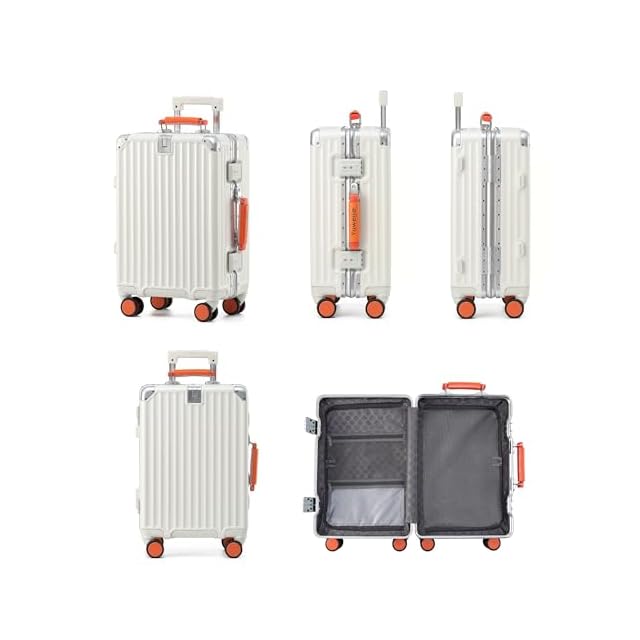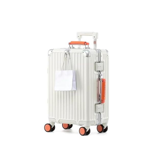 [Yuweijie] 新感覚!モダン!スーツケース キャリーケース 機内持ち込み 大型 軽量アルミフレーム式 キャリーバッグ 静音 ダブルキャスター TSAロック レトロ おしゃれなハンドル 疲れない設計 入学 海外旅行出張 Mサイズ ホワイト 4-6泊 55L