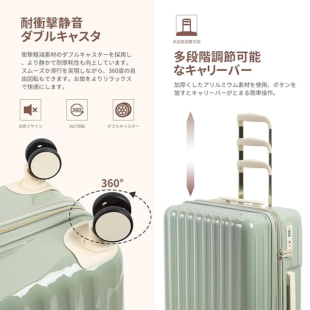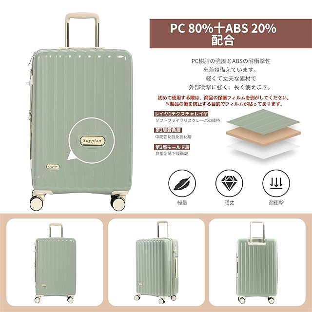 [Spyplan] スーツケース 機内持ち込み 拡張機能付き 超軽量 大容量 キャリーケース 可愛い キャリーバッグ 大型 耐衝撃 ジッパータイプ 静音 ダブルキャスター 360度回転 TSAロック搭載 人気 旅行 ビジネス 出張 mサイズ 4-6泊 グリーン 65l-78l