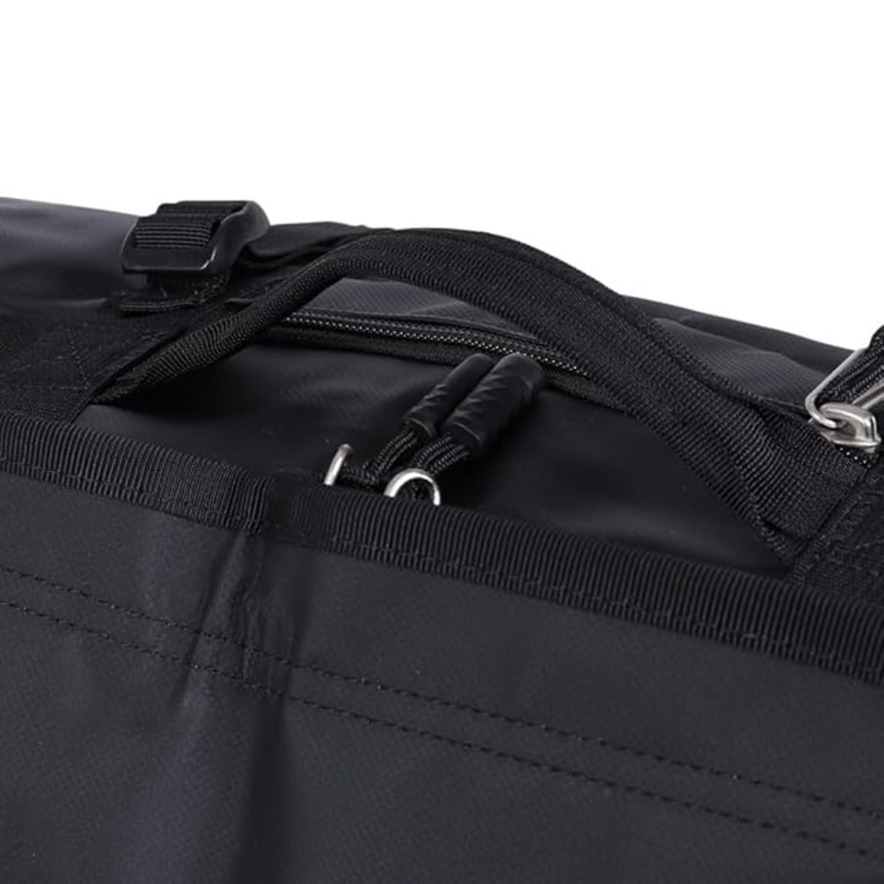 背負うことのできるショルダーハーネス/D字型で大きく開くファスナーオープニング/強度の強いバータックとステッチ/両サイドに荷揚げ用ハンドル/4本のコンプレッションストラップ/サイドデイジーチェーン/フラップ裏にメッシュポケット/IDウィンドウ/収納用メッシュバッグ付属/ジッパーつきの小型フロントポケット/サイドにキャリー用のグラブハンドル/USA企画