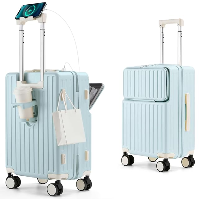 [Mularda] スーツケース フロントオープン スーツケース 機内持ち込み 多機能キャリーケース 超軽量 耐衝撃 前開き キャリーバッグ USBポート付き 360度回転 ダブルキャスター 軽量 旅行 ビジネス 出張 ブルー