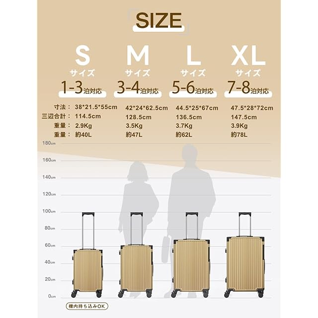 color:シャンペンゴールド size:Sサイズ/ 機内持ち込(1~3泊):