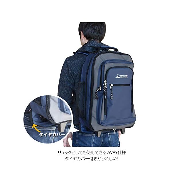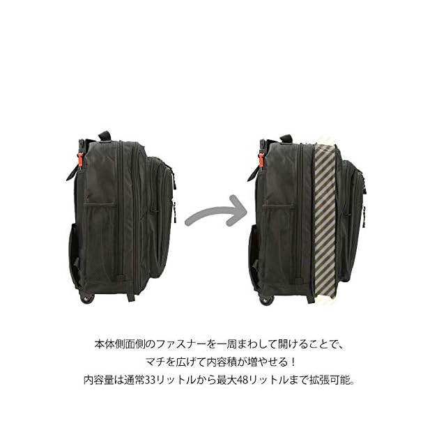 [キャプテンスタッグ] キャリーバッグ 600D 2~3泊対応 マチ幅拡張機能付 2wayリュックスタイル(33~48L) BK