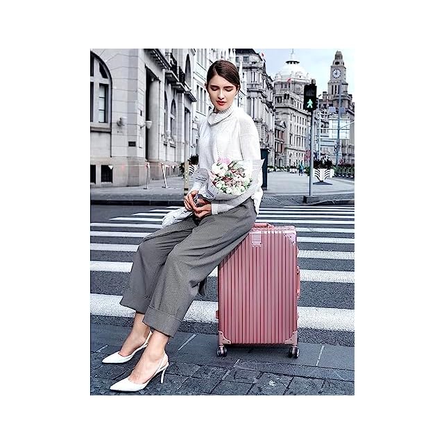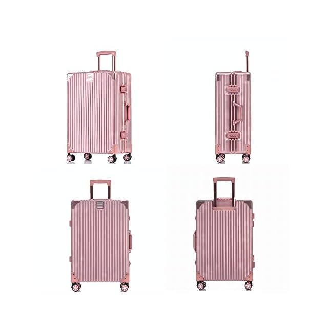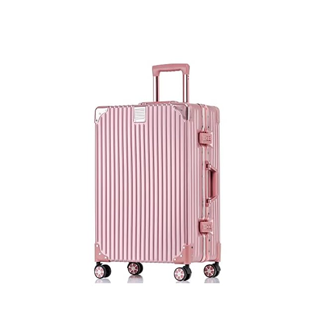 [Yuweijie] スーツケース アルミフレーム キャリー ケース機内持ち込み 預け入れスーツケース 大型トロリーケース 軽量キャリーバッグ 静音ダブルキャスター 耐衝撃 旅行 ビジネス 出張 tsaロック付 保護カバー付き,Mサイズ24inch 4泊5日 ローズゴールド60L