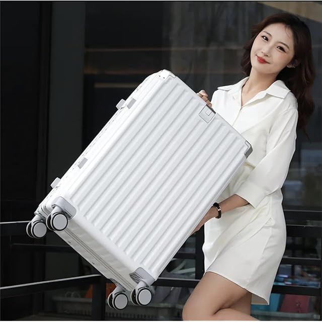 [Yuweijie] スーツケース アルミフレーム キャリーケース 機内持込可 s/m/l/xlサイズ 2泊3日 ホワイト 多機能 キャリーバッグ カップホルダー付き 隠しフック スマホホルダー付き 軽量大型 大容量 耐衝撃 人気 おしゃれ 静音 360度回転 ダブルキャスター 修学旅行 ビジネス 出張(Sサイズ 1-3泊 40リットル)