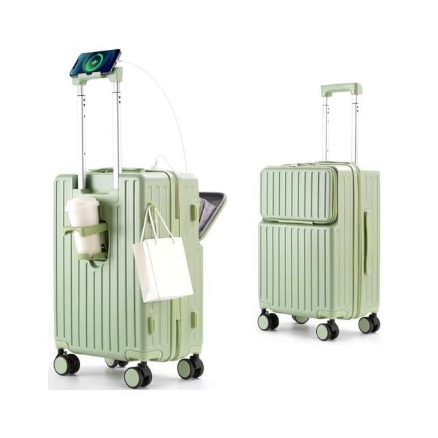 [Mularda] スーツケース フロントオープン スーツケース 機内持ち込み 多機能キャリーケース 超軽量 耐衝撃 前開き キャリーバッグ USBポート付き 360度回転 ダブルキャスター 軽量 旅行 ビジネス 出張 グリーン