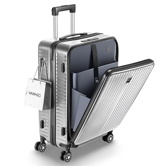 [VARNIC] スーツケース フロントオープン 多機能キャリーケース 超軽量 耐衝撃 前開き キャリーバッグ USBポート付き TSAダイヤル式ロック 360度回転 ダブルキャスター 振動軽減 軽量 旅行 ビジネス 出張 (シルバー, Mサイズ (4~7泊))