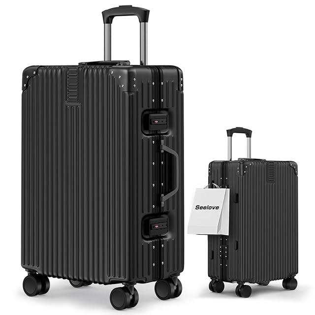 [Seelove] スーツケース キャリーケース 機内持ち込み ABS+PC 耐衝撃 大容量 超軽量 キャリーバッグ S/M/Lサイズ 360度回転 静⾳ ⼤型 おしゃれ luggage suitcase キャスター TSAロック 出張 旅⾏(Sサイズ(3~5泊/42L)(58*38*24cm) ブラック)