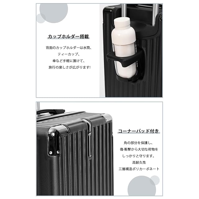 [meer] スーツケース 大容量 キャリーケース 超軽量 隠しフック機能 カップホルダー付き ABS+PC 耐衝撃 静音 ダブルキャスター TSAローク搭載 ファスナータイプ 人気 おしゃれ 旅行旅行 ビジネス 出張