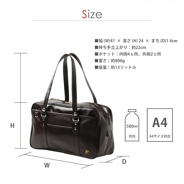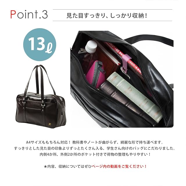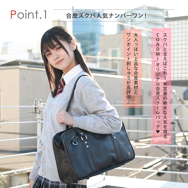 [コノミ]トランク スクールバッグ ARCB-2011 ブラック×シルバー スクバ 合皮 黒 スクールバック
