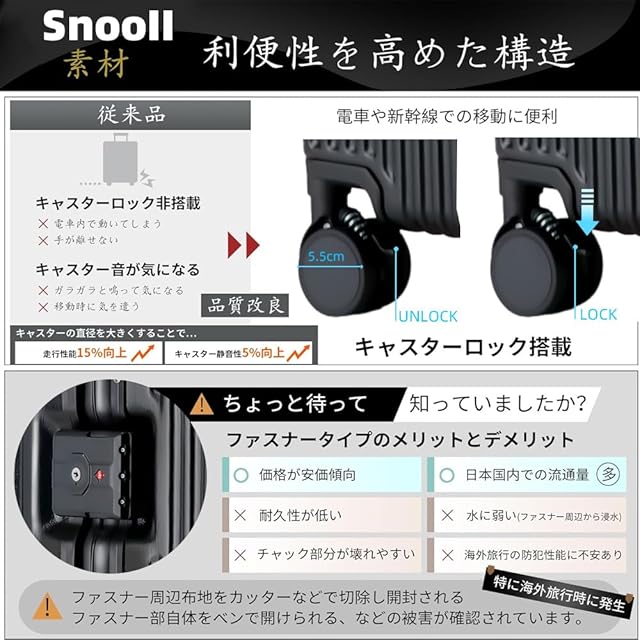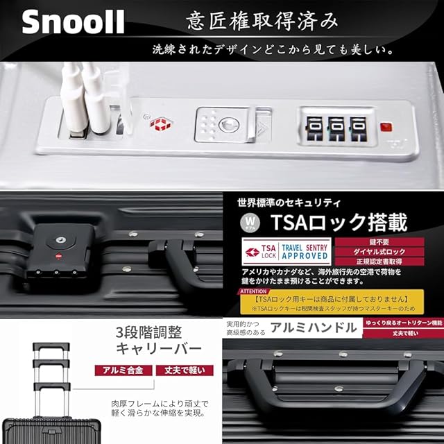 【現役客室乗務員が設計を指導·日本企業企画】現役客室乗務員の経験と日本企業の企画に基づき、SnooIIは最もコストパフォーマンスの高いスーツケースセットを発売した。 SnooIIの理念は、ブランドのフォロワーに最高の旅行道具を提供することであり、大型の多機能スーツケースは利益率が大きいが、多くの顧客は、前開きの蓋や充電ポートは実際の旅行ではあまり使われず、逆にスーツケースの収納スペースを狭くしてしまうと反省している。ビジネスマンだけでなく、学生でも飛行機に乗るときは20インチの機内持ち込みスーツケースしか持ち歩けないという人が増えていますし、パソコンやipadなどの貴重な電化製品をチェックイン用の大型スーツケースに入れることもありません。そのため、24インチと27インチのスーツケースのブレーキホイールとフックはそのままに、スーツケースの収納スペースを減らすことになる前面開口部のフラップとカップホルダーを取り外した。 このデザインコンセプトをシリーズ化し、お客様にお選びいただけるようにしました。