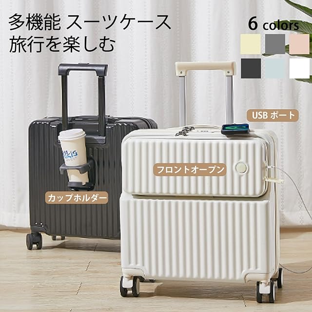 便利で使いやすい≫○USBポートを搭載しているため、スーツケースを開けることなく充電しながら持ち運び可能。○サイドフックやカップホルダーが搭載され、ドリンク、傘、バッグなどを配置でき、手への負担を軽減し、旅行を楽しむ!注意事項≫XSとSサイズは小さいため、側面の持ち手とサイドフックがキャンセルされました。