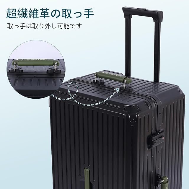 【三段調節キャリバー&柔軟ハンドル+ 移動式USBポート】超軽量のアルミニウム製キャリバー、高さ三段階調節、ご自分の身長に合わせてスムーズに調整が可能です。耐振性に優れるデザインで荷物を引きかける時、しっかりしています。また、滑りにくいソフトハンドルで長い時間の手提げでも手は疲れません。スーツケースはUSB、Type-c充電ポートがあります。スーツケースの内部にモバイルバッテリーを収納するポケットがついており、モバイルバッテリーを出し必要がありません、歩いながらスマホを充電することができます。また、充電ポートには防水カバーが付いているので、雨の日の旅行でも心配する必要はありません。