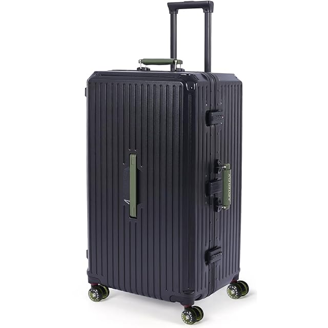 [GGQAAA] 大容量 荷物 トロリースーツケース 女性 回転自在のキャスター 5輪キャスター ダイヤルロック 出張 留学用スーツケース大型 多機能 アルミフレーム Lサイズ (Black+green wheel)