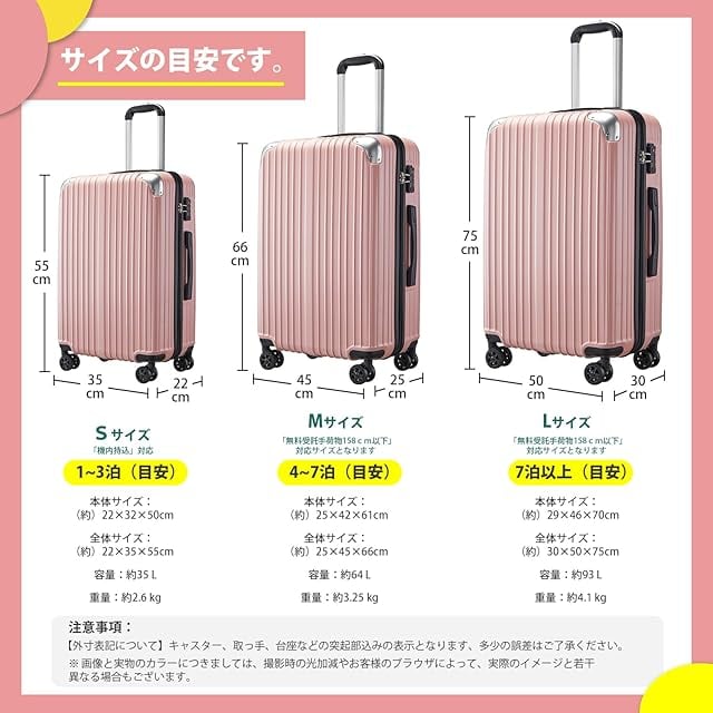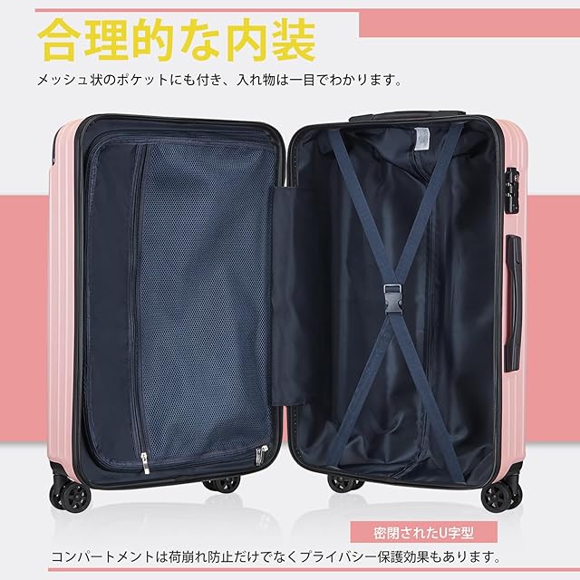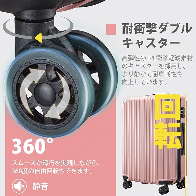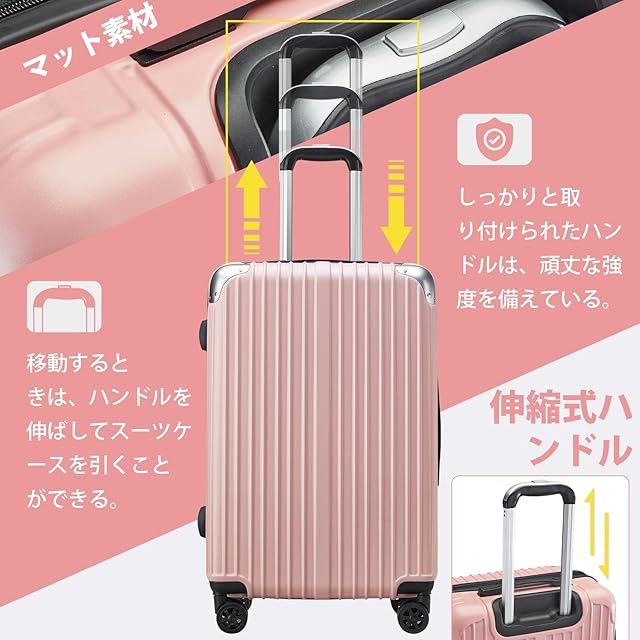 【素材・超軽量】スーツケースはABS樹脂とPCでの混合素材で作られ、耐衝撃性に優れています。超軽量かつ耐衝撃性に優れています、 女性でも楽々に持ち出かける人気なキャリーケースです。