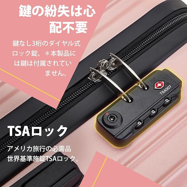 【TSAロック】世界基準施設TSAロックが搭載し海外旅行や出張などに対応 。工場から出荷する時の初期パスワードは「000」です。アメリカ空港(グアム、ハワイ、サイパン含む)では必需品。警告:こちらのタイプのTSAロックはダイヤル式です。鍵穴がありますが、鍵は付属しません。鍵穴は空港職員用となります。