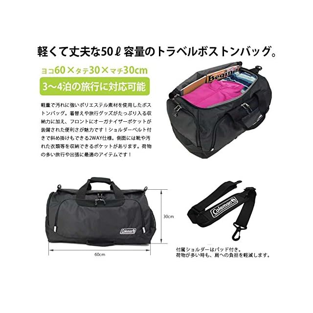 コールマン(Coleman)ボストンバックMD メンズ レディース ユニセックス ボストンバッグ ショルダーバッグ 50L 大容量 旅行 軽量