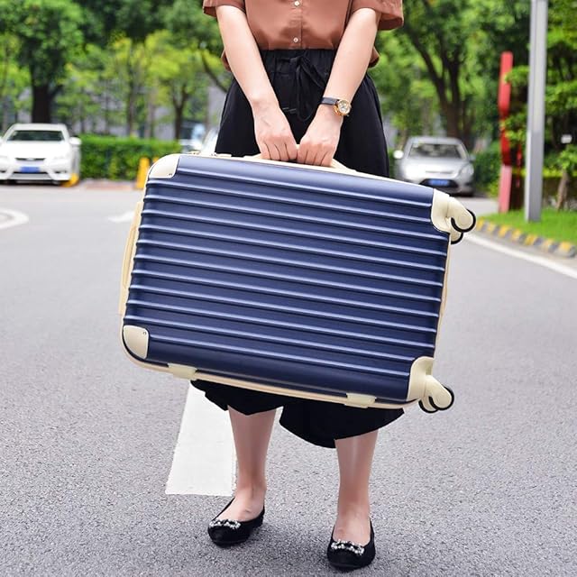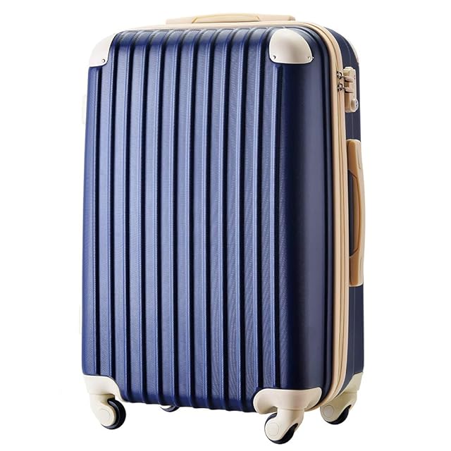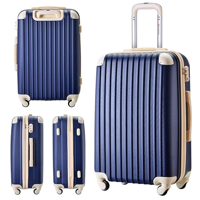 [トラベルハウス] スーツケース キャリーバッグ キャリーケース 超軽量 TSAロック搭載 機内持込 360度回転 ファスナー式 国際的 半鏡面 人気色【一年 (SS, ネイビー+ベージュ)