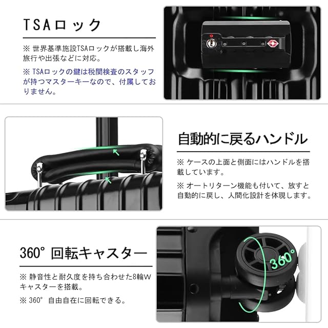 【TSAロック】海外旅行には欠かせない世界基準のダイヤル方式のTSAロックを採用しています、より安全で便利です。注意:本体の鍵穴はTSA職員の検査用ですので、お客様には付属の鍵はございません。