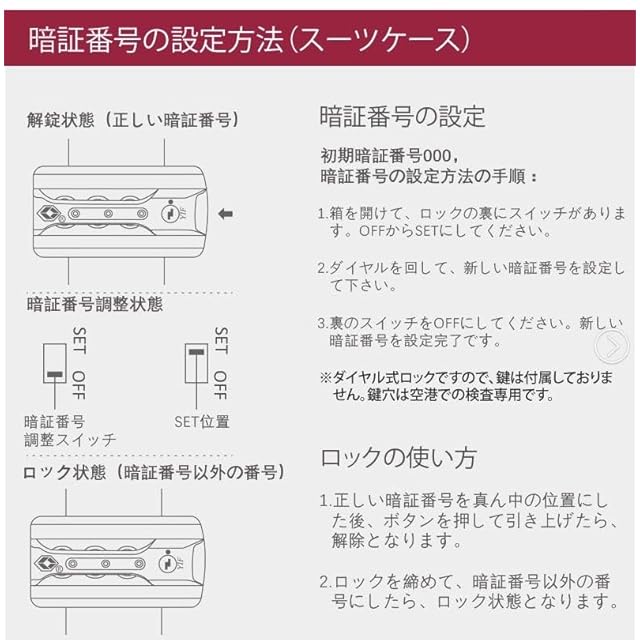 【全アルミニウム合金ボディ+アルミニウムフレーム】このアルミ製スーツケースは、 全アルミニウム合金ボディとアルミニウムフレームを備えており、洗練されたクールな外観を持っています。金属素材により強度と耐久性が確保され、長寿命を実現しています。金属のボディが高級感を演出し、優れた選択肢となります。有名ブランドの製品と比較すると、数倍もの価格差がありながら、丈夫で軽量であるという点で優れています。ご注意ください:ご注意ください: 商品を受け取ったら、暗証番号を設定する前に、ロックの背面に「変更レバー」があるかどうかをご確認ください。 変更レバーがない場合 → スーツケースに付属の説明書を見て設定してください。 変更レバーがある場合 → 商品ページの画像にある手順に従って設定してください。