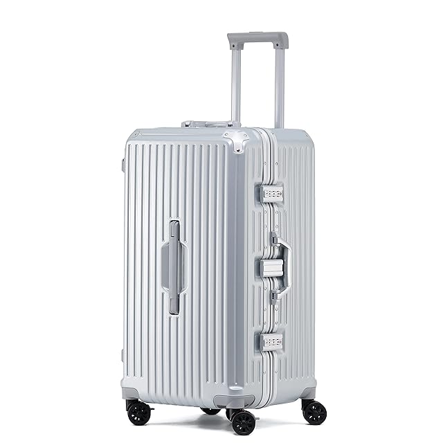 [GGQAAA] 大容量 荷物 トロリースーツケース 女性 回転自在のキャスター 5輪キャスター ダイヤルロック 出張 留学用スーツケース スーツケース 多機能 アルミフレーム Sサイズ (Sサイズ/1-5泊/85L, Silver)