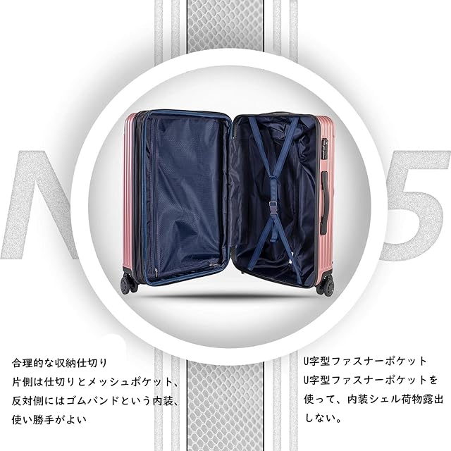 【素材・超軽量】スーツケースはABS樹脂とPCでの混合素材で作られ、耐衝撃性に優れています。超軽量かつ耐衝撃性に優れています、 女性でも楽々に持ち出かける人気なキャリーケースです。