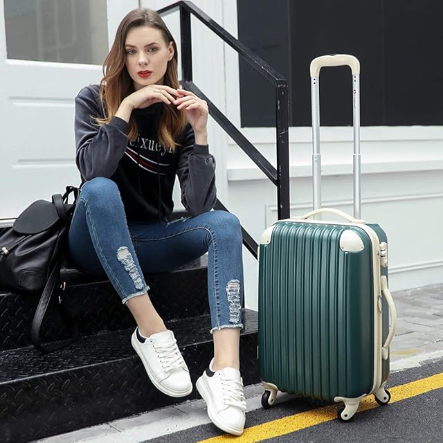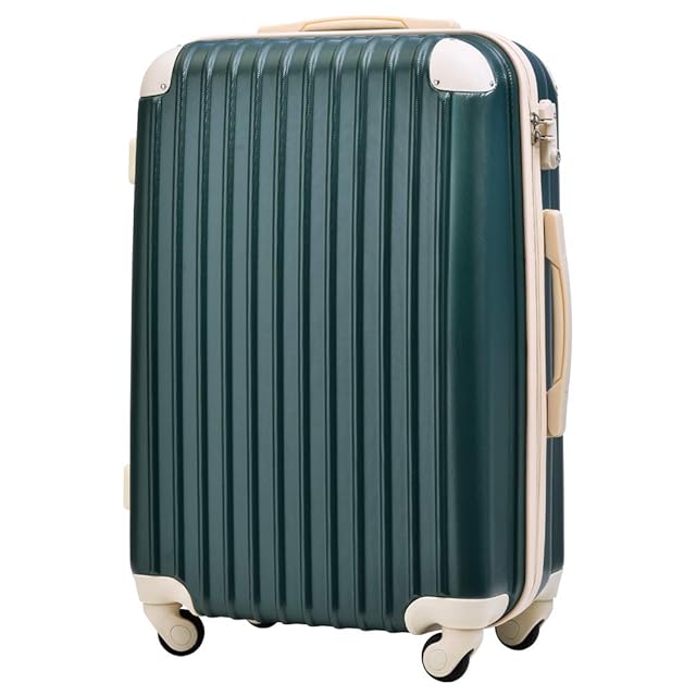 [トラベルハウス] スーツケース キャリーバッグ キャリーケース 超軽量 TSAロック搭載 機内持込 360度回転 ファスナー式 国際的 半鏡面 人気色【(Mサイズ(64L/4-7宿泊), エメラルドグリーン+ベージュ