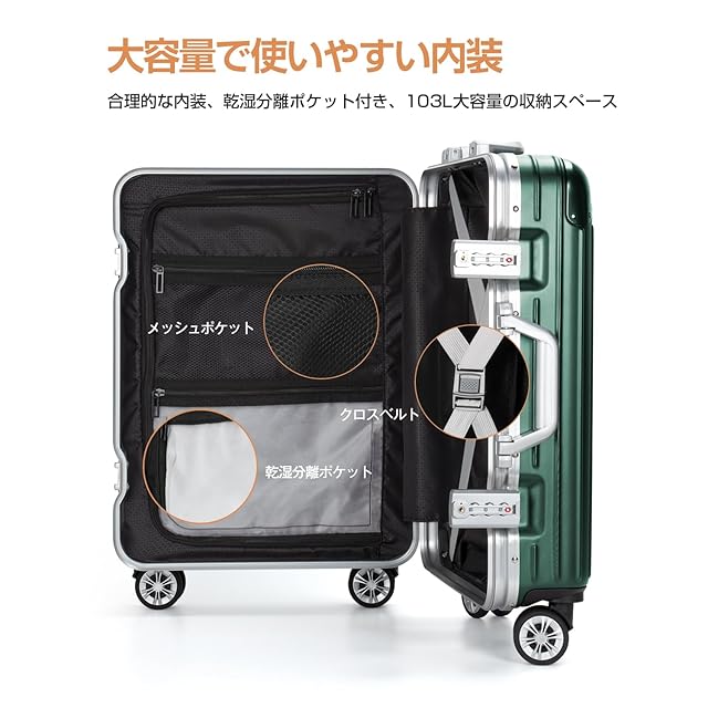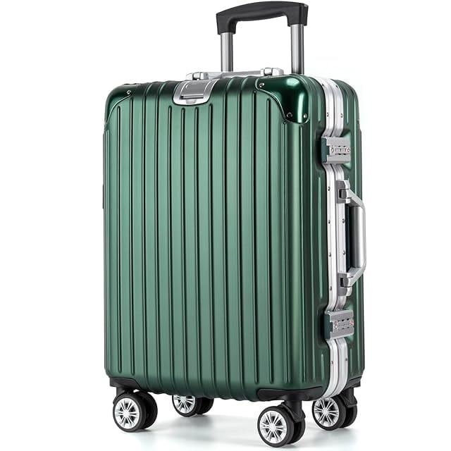 [VARNIC] スーツケース キャリーケース キャリーバッグ アルミフレーム 大型 静音 ダブルキャスター 耐衝撃 360度回転 TSAダイヤルロック 旅行 出張 (L, グリーン)