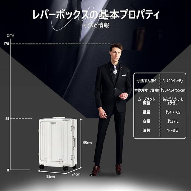 【多機能フロントカバーデザイン&合理的な仕切りデザイン】スーツケースにて画期的なデザイン、前ポッケトスーツケースが誕生。読みたい雑誌でも、仕事で必要なパソコンでも、早く手に取りたいものがたっぷり入られます。 高品質のポリエステル生地で、柔らかいかつ快適です。密閉されたU字型コンパートメントは荷崩れ防止だけでなくプライバシー保護効果もあります。乾湿分離のデザイン、分けて収納でき、よりきれいです。。メッシュポケットにより、収納しにくい小物でもは一目でわかります。X型ベルトが完備され、荷物崩れを完全防止。収納力抜群、たくさんの小物を入れることはできます。