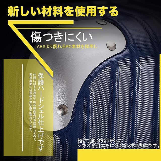 【新レベルアップ】新製品には新素材を採用しておます。視覚では外観には非鏡面素材を採用しており、素材表面には微細な粒状感が現れています。注意 正面の隠しボタンも廃止しました。傷つきにくい保護ハードシェル仕上げです、ABSより優れる素材PCを採用します、軽くて強いPCボディにキズを目立ちにくくするエンボス加工。