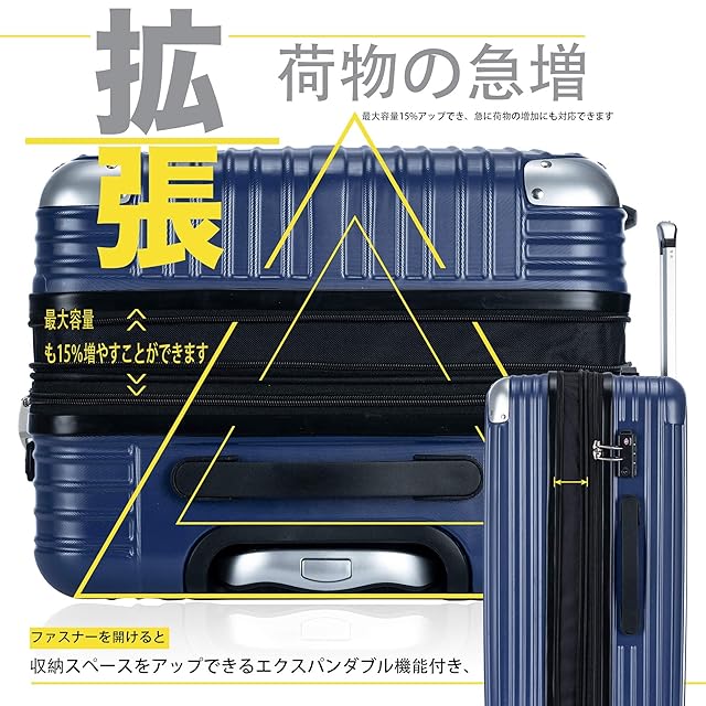 【拡張機能付き】Sサイズ: 縦53*横35*奥行24cm /機内持ち込み可/ 重さ約:3 Kg /容量約:40L (拡張時47L).スーツケースには拡張ジッパーが付いており、急に荷物の増加にも対応できます。【ご注意事項】※キャスター、取っ手、台座などの突起部込みの表示となります、多少の誤差はご了承ください。