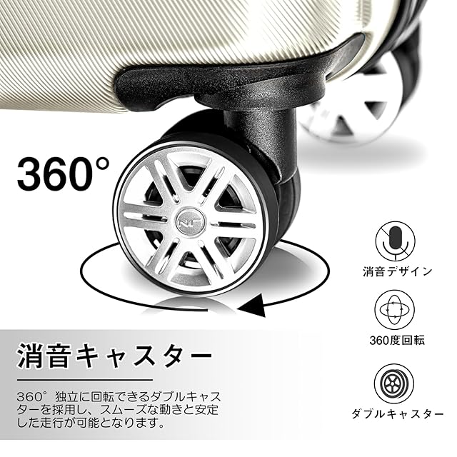 [New Trip] スーツケース キャリーケース 機内持ち込み 軽量 大型 S/M/Lサイズ キャリーバッグ 耐衝撃 大容量 ファスナータイプ 静音 ダブルキャスター TSAロック 海外 旅行 ビジネス 出張 (ホワイト、Mサイズ:4~7泊/60L)