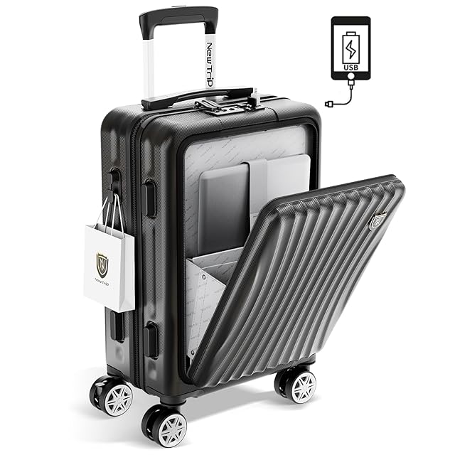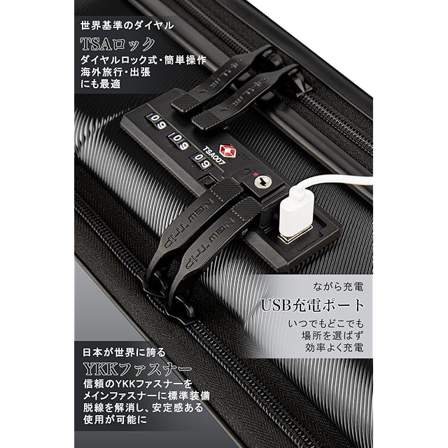 [New Trip] スーツケース 機内持ち込み フロントオープン キャリーケース Sサイズ USBポート付き ストッパー付き YKKファスナー TSAロック 静音 ダブルキャスター ビジネス 出張 1-3泊 40リットル ブラック