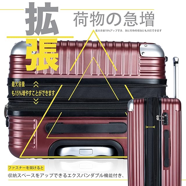 [TTOVALIGERIA] スーツケース Sサイズ機内持ち込み キャリーケース キャリーバッグ 容量拡張 軽量 静音 TSAロック搭載 ファスナータイプ 大型 (Sサイズ ワインレッド)