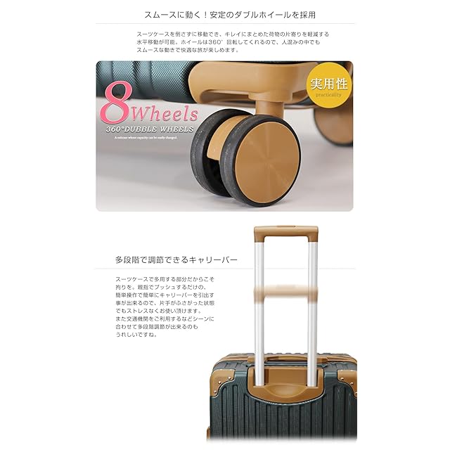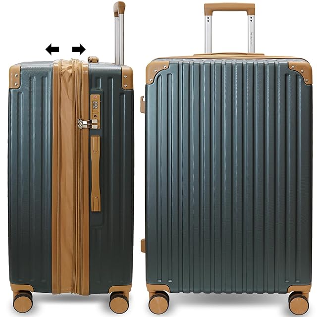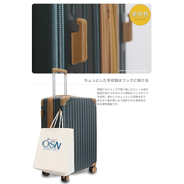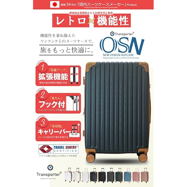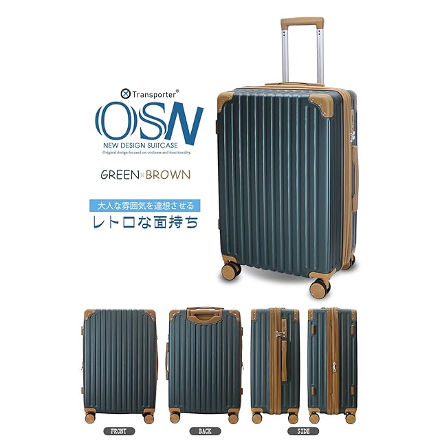 [Transporter] 拡張機能・フック付き 創業34年の国内メーカーが作る スーツケース キャリーケース (グリーン×ブラウン, Lサイズ)