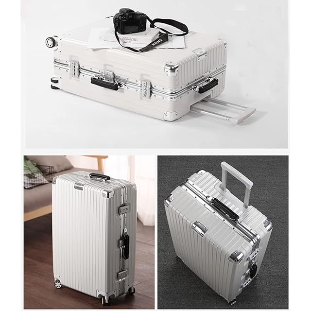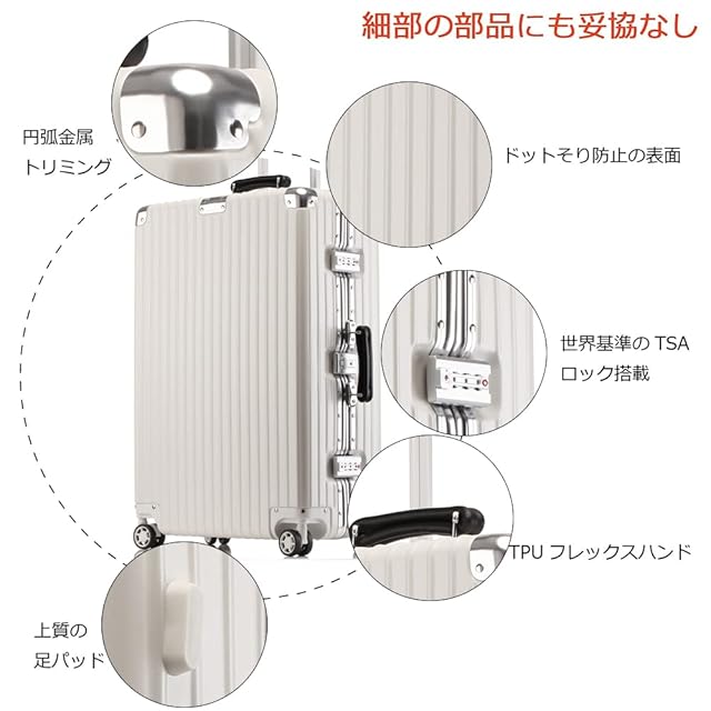 [lanbao] スーツケース アルミフレーム 軽量 キャリーケース 耐衝撃 キャリーケース 機内持込 キャリーバッグ 人気 大型 TSAロック付 静音 旅行出張スーツケース1608 (ワイト, S-20inch(38.5*56*20.5cm/35L/機内持込))