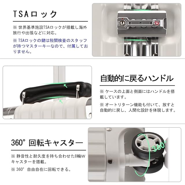 【TSAロック】海外旅行には欠かせない世界基準のダイヤル方式のTSAロックを採用しています、より安全で便利です。注意:本体の鍵穴はTSA職員の検査用ですので、お客様には付属の鍵はございません。