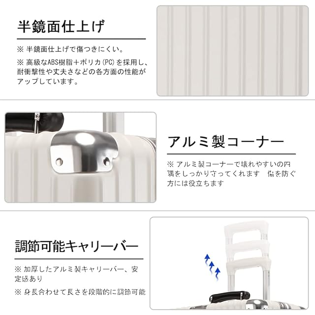 【耐衝撃材质】おしゃれのトランクは高級なABS+PC混合樹脂を採用し、耐衝撃性や丈夫さなどの各方面の性能がアップしています。そしてりょこバッグの表面にはヘアライン仕上げがされましたので、傷を防ぐ方には役立ちます。超軽量ですから海外のトラベルやビジネス出張に便利です。